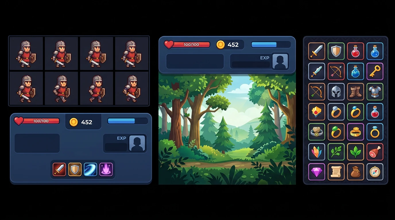 Игровая графика имеет более строгие ограничения, чем редакционная иллюстрация. Спрайт персонажа должен читаться при размере 32×32 пикселя. Кнопка интерфейса должна сочетаться с тремя дочерними кнопками с одинаковым визуальным весом. Фоновая плитка должна зацикливаться без шва. Это системные ограничения , а не художественные предпочтения — и GPT Image 2 реагирует на них, когда вы включаете их в подсказку.